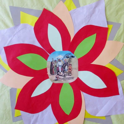 Avec les enfants aujourd’hui, nous avons lu l’Evangile, et raconté la montée de Jésus à Jérusalem tout en décorant un petit rameau.