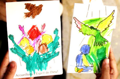 Avec les enfants aujourd’hui, nous n’avons pas lu l’Evangile : nous avons parlé de l’Esprit-Saint.