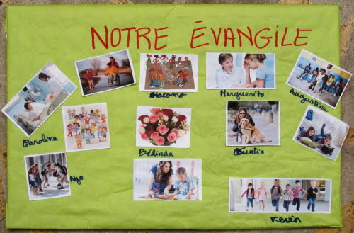 Avec les enfants aujourd’hui, nous avons lu l’Evangile, et nous nous sommes arrêtés sur le fait que Jésus proclame l’Evangile, proclame la Bonne Nouvelle.